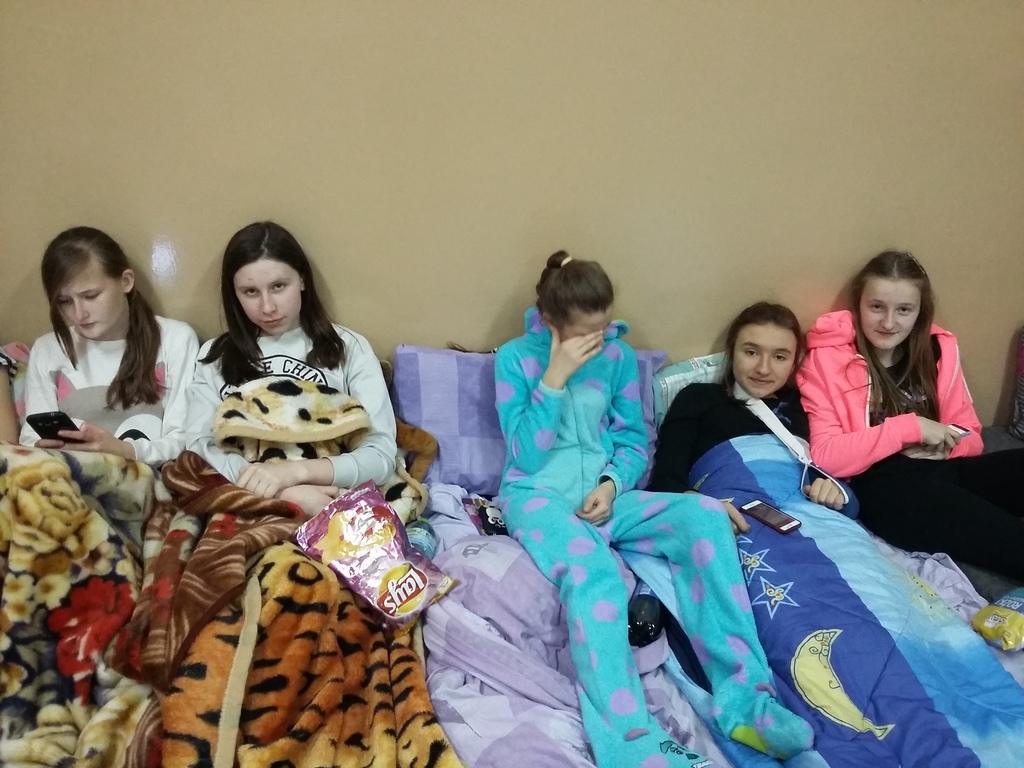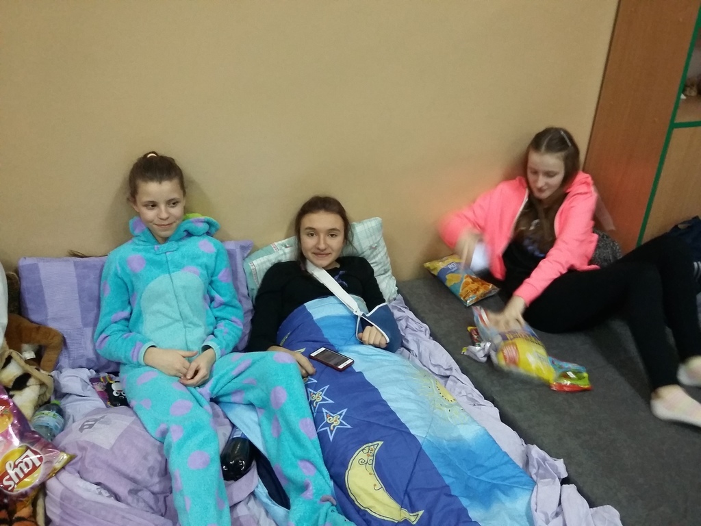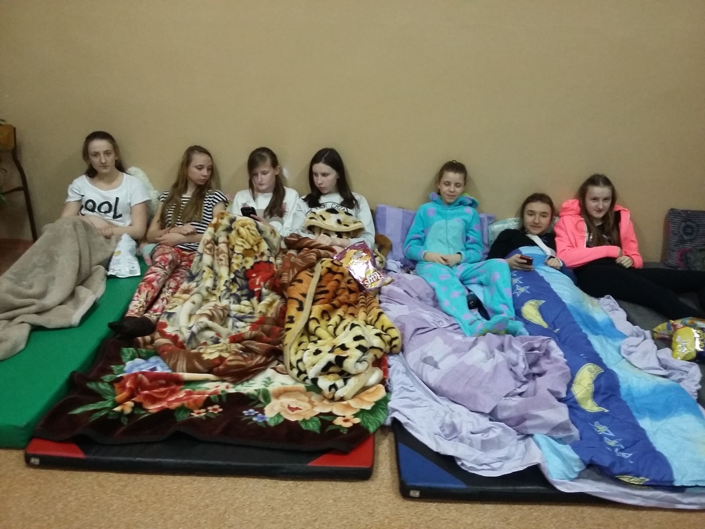 Alternatywą dla samotnego siedzenia w domu przed telewizorem, lub komputerem, były rozgrywki na sali gimnastycznej, samodzielne przygotowywanie kolacji i śniadania, zapoznanie się ze zdrową kuchnią, gry i zabawy integracyjne. Smoothie nie wszystkim przypadły do gustu, ale towarzyska gra fabularna w MAFIĘ była hitem. Po raz kolejny młodzież urządziła sobie kino w szkole i oglądała wybrane filmy. Tradycyjnie noc była nieprzespana, jednak od czego pozostała sobota?