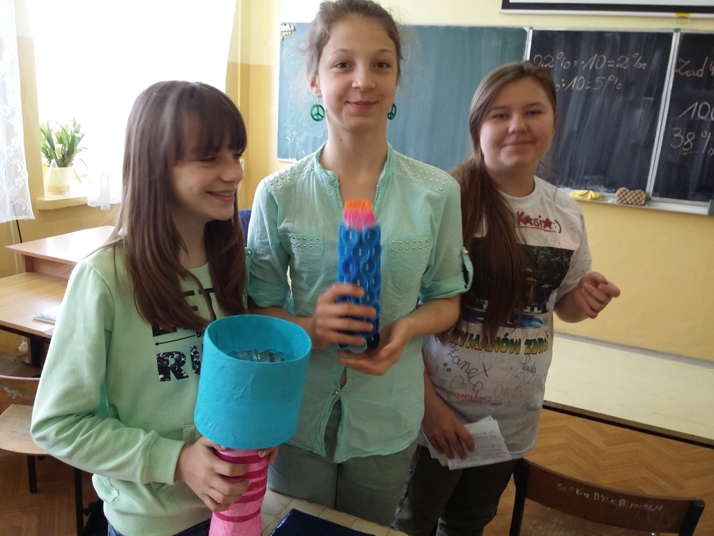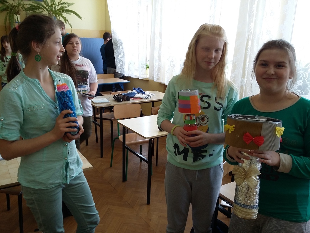 Dzięki informacjom na stronie odpakowani.pl i publikacjom organizatora na Facebooku uczniowie mogli na bieżąco śledzić zasady gospodarki odpadami, brać udział w konkursach, rozszerzać swoją wiedzę. Podczas lekcji i poza lekcjami pracowaliśmy z wykorzystaniem niepotrzebnych już surowców – butelek, opakowań, pudełek, korków itp, dając im drugie życie. Omawialiśmy także zasady segregacji śmieci, recyklingu i ochrony środowiska.