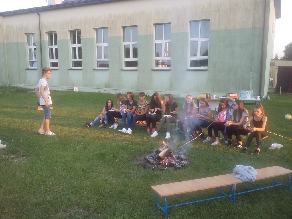 Jedną z ulubionych form integracji klasowych są ogniska. Wieczorem 9 września 2016 roku odbyło się ognisko klasy IIa gimnazjum pod opieką wychowawczyni pani Joanny Jackowskiej. Sprzyjała nam piękna pogoda, zaczynał się weekend, byliśmy razem, więc humory dopisywały. Impreza tradycyjnie rozpoczęła się od rozpalenia ogniska i pieczenia kiełbasek. Następnie uczniowie rozegrali mecz pilki nożnej. Gdy zaczynało się ściemniać okazało się, że jest to idealna pora do zabawy w chowanego. Zabawa toczyła się do późna, a czas mijał bardzo szybko. W przerwach można było „posilić się” markizami piankowo - herbatnikowymi lub ogrzać przy ognisku. Czas umilała muzyka. Wszystko co dobre szybko się kończy, jednak podnosił na duchu fakt, że to nie nasze ostatnie ognisko.