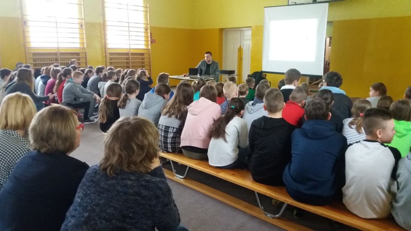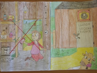 Większość uczniów naszej szkoły pochodzi z rodzin rolniczych lub często spędza czas u rodziny, czy znajomych na wsi. Zaś każdy kto żyje i pracuje na wsi wie, jak ważne jest bezpieczeństwo podczas wszelkiego rodzaju prac gospodarczych i polowych. Aby od najmłodszych lat dzieci miały świadomość tych zagrożeń, 13 marca gościł w naszej szkole pan Konrad Pęcak, przedstawiciel KRUS w Kraśniku, który przedstawił dzieciom zagrożenia, jakie czyhają na nie w gospodarstwie i sposoby jak się przed nimi ustrzec. Głównym założeniem spotkania było promowanie pozytywnych zachowań związanych z pracą i zabawą na terenach wiejskich oraz szerzenie wiedzy o bezpieczeństwie i higienie pracy rolniczej. Uczniowie mieli możliwość obejrzenia pouczających i ciekawych filmów o bezpieczeństwie. Dzieci dowiedziały się jakich czynności nie powinny wykonywać pomagając rodzicom w pracy na terenie gospodarstwa. Uczestnicy pogadanki otrzymali kolorowe broszury prewencyjne. Szczególną uwagę pan Pęcak poświęcił zagadnieniom związanym z używaniem środków chemicznych w pracach polowych i gospodarskich. Jest to także temat VII Ogólnopolskiego Konkursu Plastycznego „Bezpiecznie na wsi to podstawa - środki chemiczne to nie zabawa” skierowanego do uczniów szkoły podstawowej. Biorą w nim udział uczniowie klas I – III i IV – VI szkoły podstawowej. Po trzy najlepsze prace z każdej kategorii wiekowej zostały wysłane na etap powiatowy konkursu. Były to prace uczniów: Izabeli Dudek z klasy VI sz.p., Filipa Kopcia i Klaudii Łukanty z klasy V sz.p., Damiana Szczesiaka z klasy III sz.p., Alicji Mitrut z klasy I sz.p. i Emilii Ufniarz z klasy II sz.p.