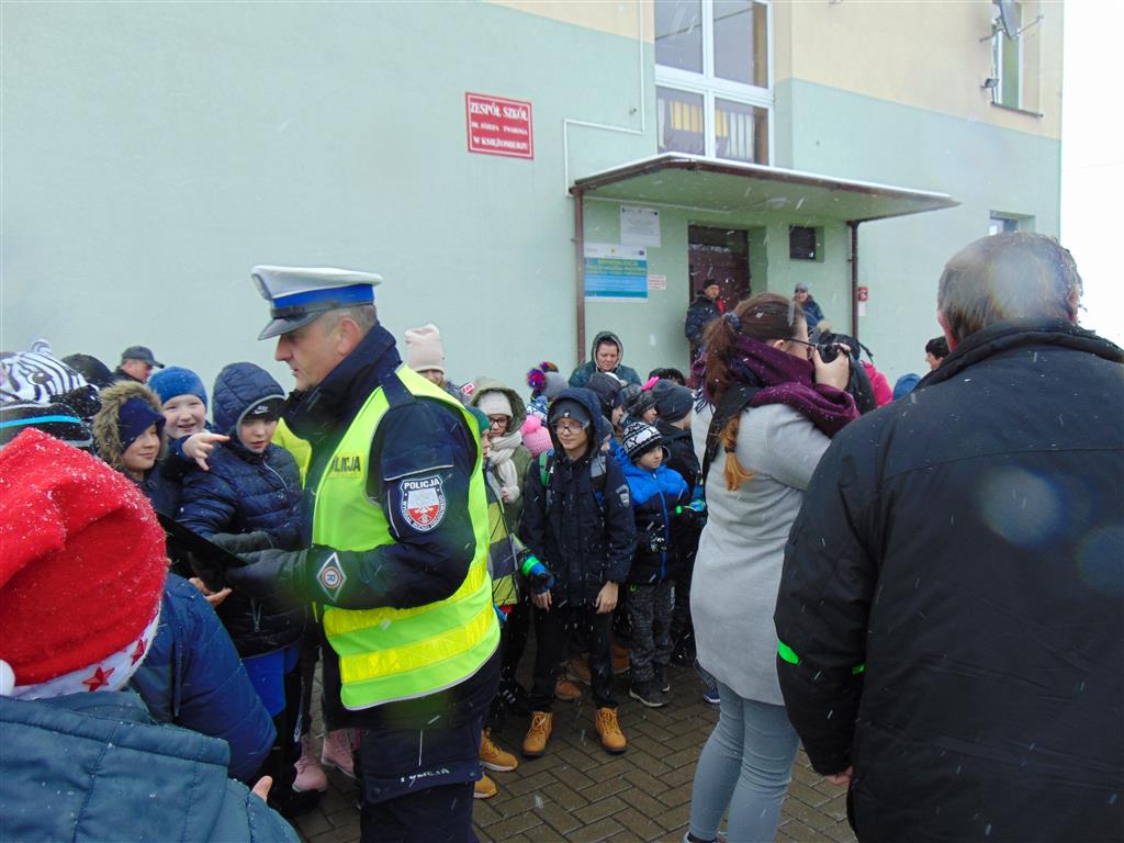 W dniu 30 listopada 2017r. w Zespole Szkół im. Józefa Twaroga w Księżomierzy odbyło się spotkanie uczniów z funkcjonariuszami policji z sekcji ruchu drogowego, od których otrzymali opaski odblaskowe w ramach akcji ,,Bezpieczna droga do szkoły”. Opaski mają być używane przez dzieci nie tylko w drodze do i ze szkoły.