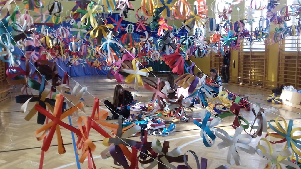 Tuż przed feriami odbył się w naszej szkole długo wyczekiwany przez uczniów bal karnawałowy, który poprzedziły przygotowania. Dzięki wspólnej pracy wszystkich uczniów z gimnazjum razem z wychowawcami sala gimnastyczna w ciągu kilku dni zamieniła się w przepiękną salę balową mieniącą się tysiącem barw i świateł.