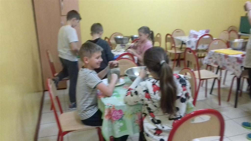 Wszyscy fantastycznie się bawili. Wspólnie przygotowywali zapiekanki na kolację, pyszne ciasto na deser. Były zabawy i gry sportowe , kino szkolne z popcornem, nocne rozmowy do świtu… Miłą niespodzianką dla uczniów okazała się wizyta rodziców, którzy przyłączyli się do wspólnej zabawy i zagrali ze swoimi pociechami w popularnego zbijaka. Dzieci poczęstowały gości ciastem i herbatką.