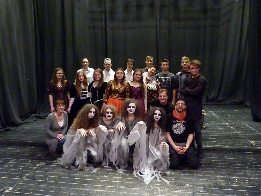 Również w tegorocznym przeglądzie uczestniczyła grupa teatralna z naszej szkoły "ABRA- KADABRA, która przedstawiła spektakl pt."Czarownice" na podstawie fragmentów "Makbeta " W. Szekspira.