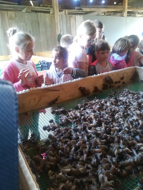 W Polsce z roku na rok rośnie zainteresowanie hodowlą ślimaków. Dlatego też uczniowie klas młodszych z naszej szkoły postanowili sprawdzić jak taka hodowla wygląda. Udało się to w dniu 19 września 2018r. dzięki uprzejmości Państwa Kopciów z Księżomierzy, którzy taką hodowle prowadzą. Uczniowie klas I-III mogli zobaczyć w jakich warunkach ślimaki się rozwijają, poznać ich wygląd, budowę i sposób odżywiania się. Co odważniejsi brali ślimaki do ręki. Na zakończenie maluchy dostały od właścicieli słodki upominek. Wycieczka bardzo się wszystkim podobała. Dzięki niej uczniowie dowiedzieli się, że hodowla ślimaków wymaga od hodowcy dużego zaangażowania i dużej troskliwości.