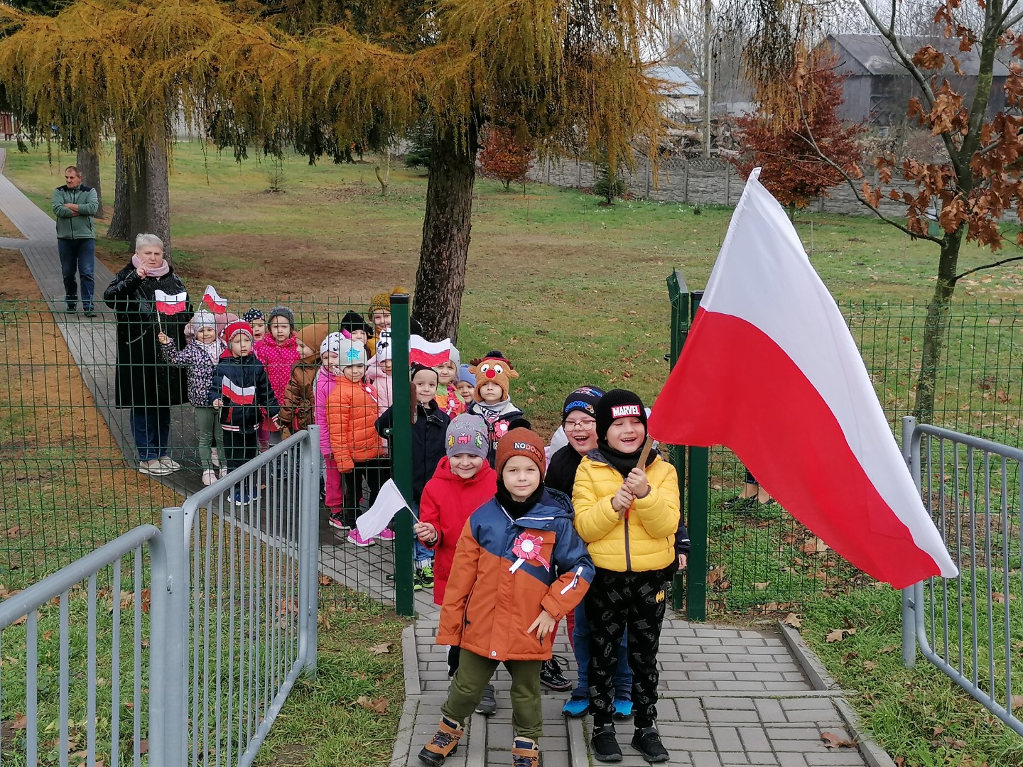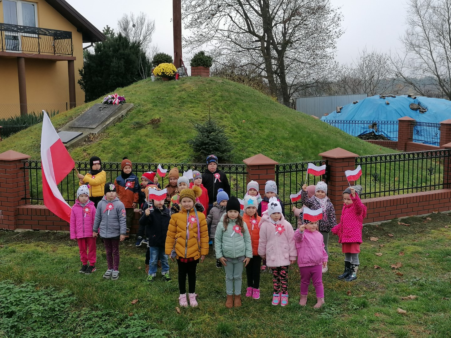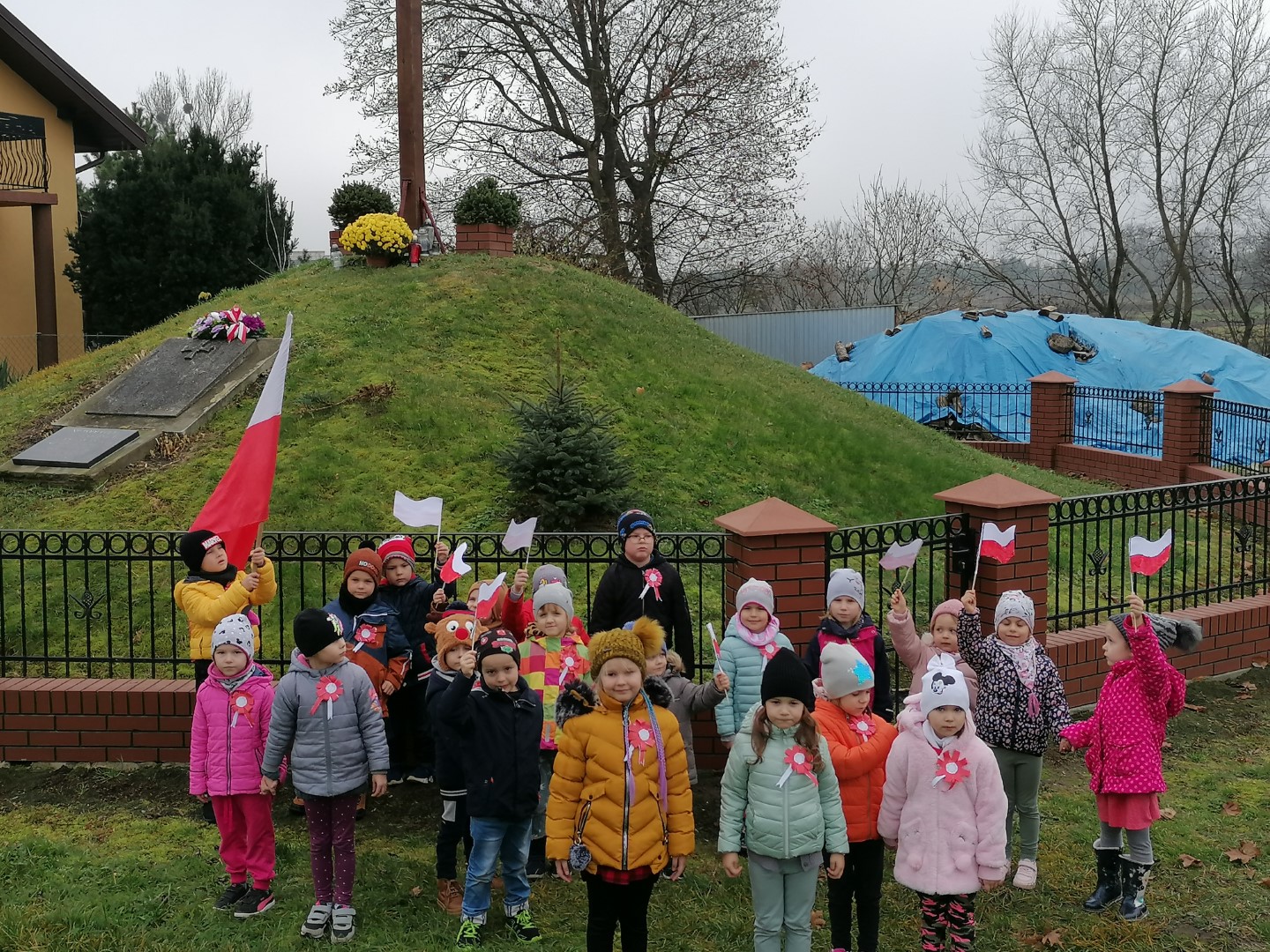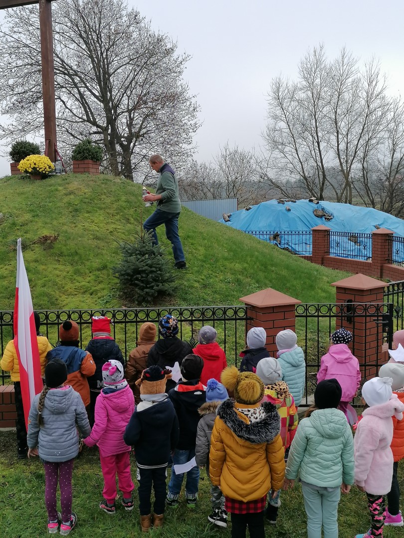 Z okazji 104 rocznicy Odzyskania przez Polskę Niepodległości, przedszkolaki i kl. „0” uczciła pamięć o bohaterach tamtych czasów. Dzieci z flagami w dłoniach i kotylionami na piersiach, dumnie maszerowały na Kopiec Niepodległości. Przedszkolaki wysłuchały krótkiej informacji związanej z tym miejscem, odpowiadały na zadawane pytania. Na koniec, przy Krzyżu zostały zapalone dwa znicze w kolorze biały i czerwonym, symbolizujące nasze barwy narodowe.