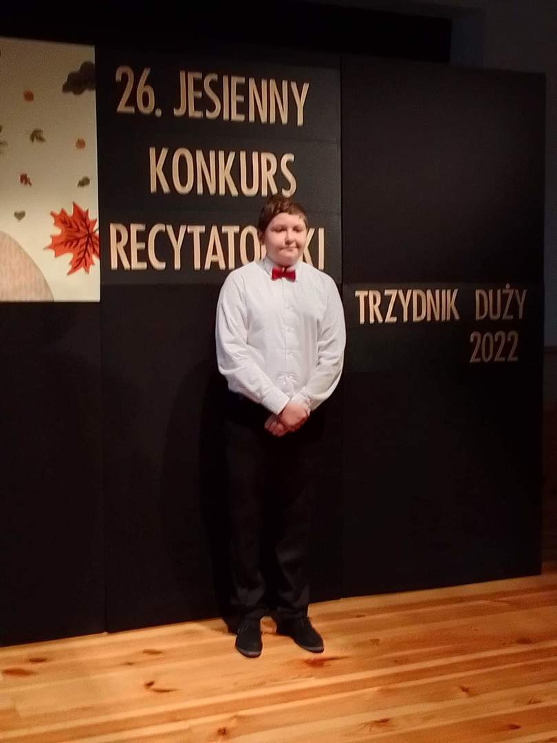 W etapie powiatowym 26. Jesiennego Konkursu Recytatorskiego, który odbył się dzisiaj w Gminnym Ośrodku Kultury w Trzydniku Dużym, uczeń klasy V– Emil Marszałek, zdobył nominację do turnieju wojewódzkiego. O sukces rywalizowało 56 recytatorów z powiatu kraśnickiego. Emil jest jednym z czterech nominowanych osób. Na to wyróżnienie uczeń zasłużył trafną interpretacją utworu "Ballady o pięciu nudnych" Joanny Kulmowej. Turniej wojewódzki odbędzie się 29 i 30 listopada w Centrum Spotkania Kultur w Lublinie.