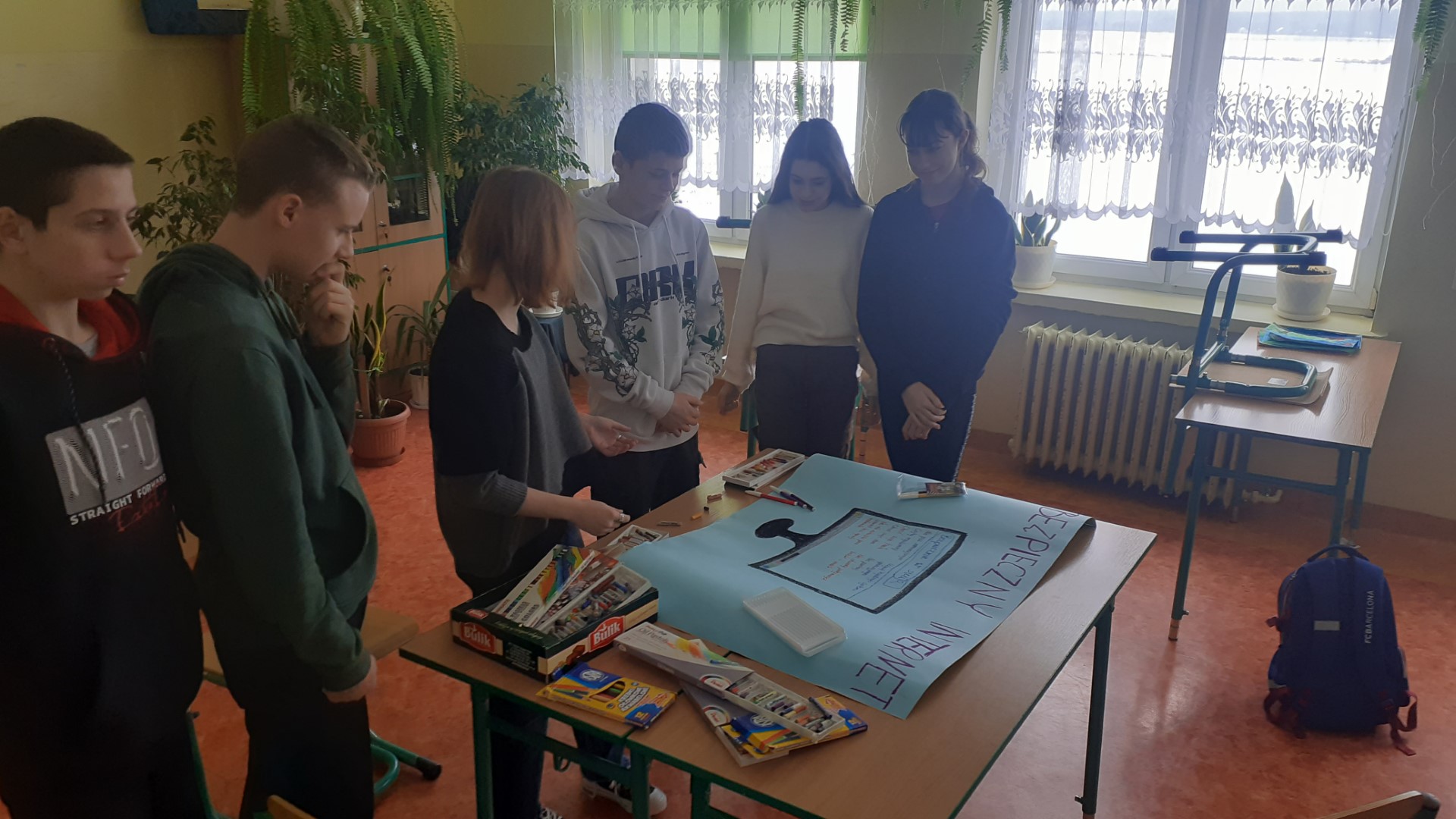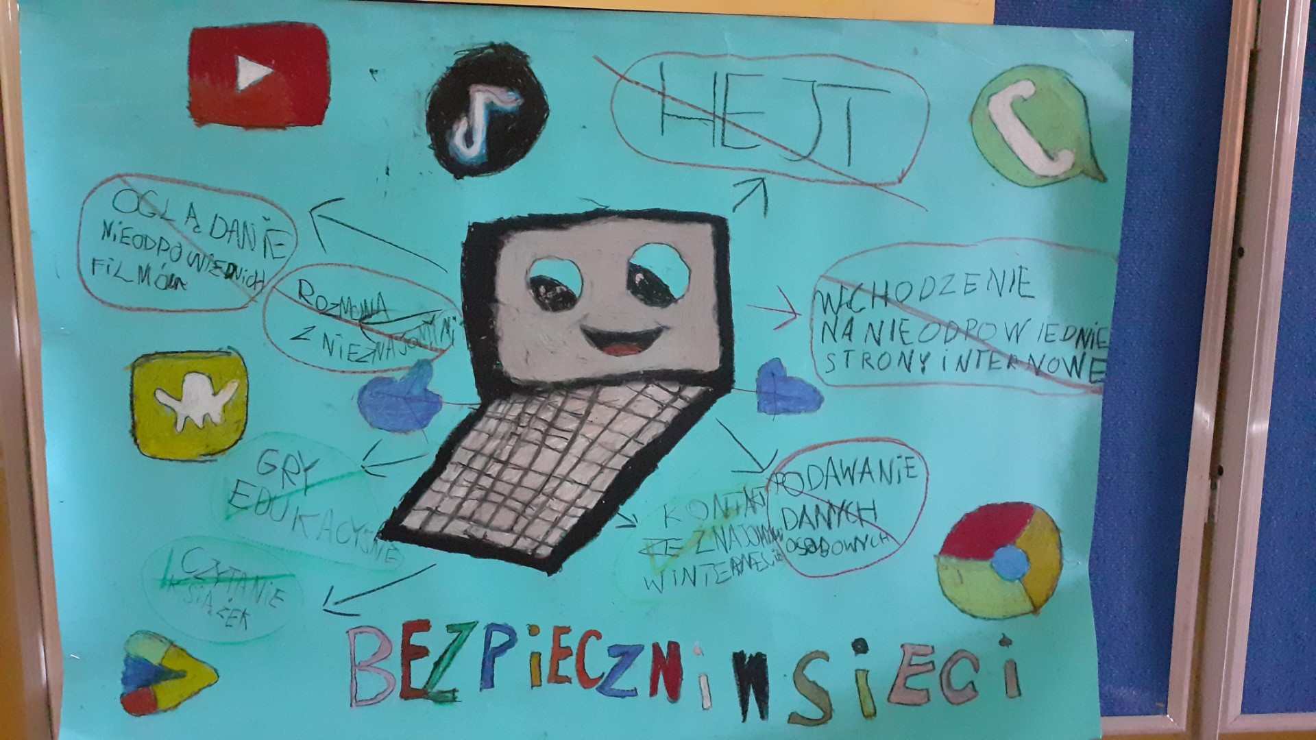 Uczniowie wykonali plakaty, które obrazowały zasady bezpiecznego korzystania z Internetu.