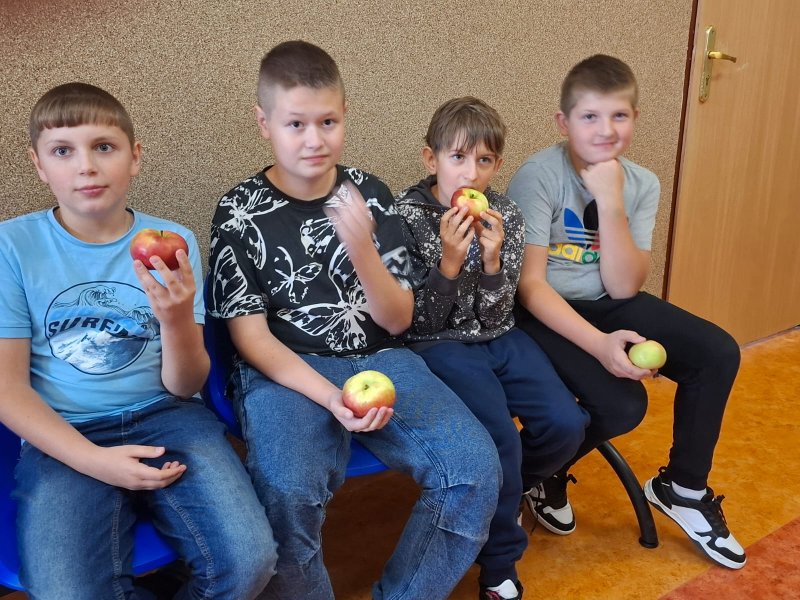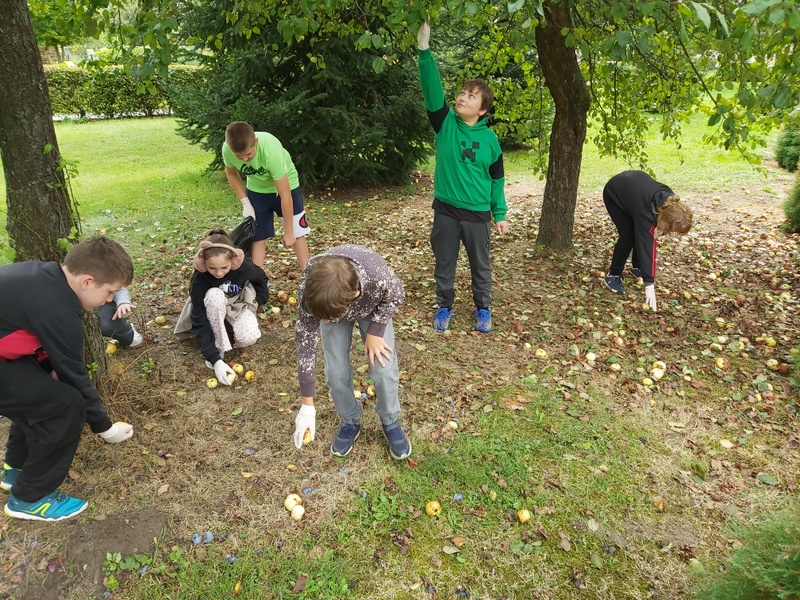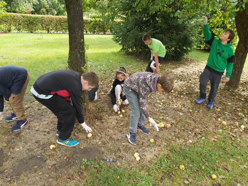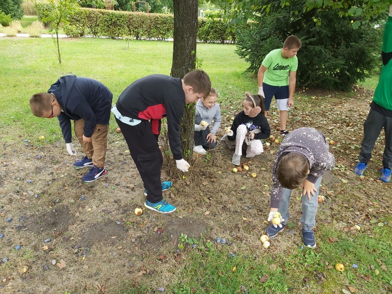 Samorząd Uczniowski przeprowadził akcję zbierania jabłek z jabłoni przed szkołą, które następnie zostały zawiezione do skupu owoców i warzyw.