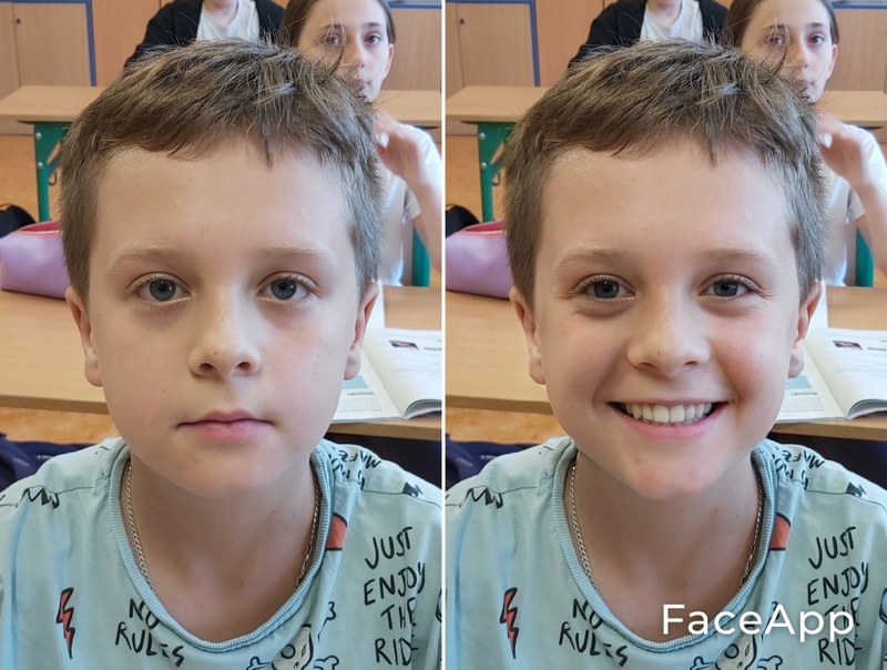 Uczniowie naszej szkoły bawili się świetnie, wykorzystując aplikację filtrującą twarz FaceApp. Teraz pora, abyś to Ty się uśmiechnął.
