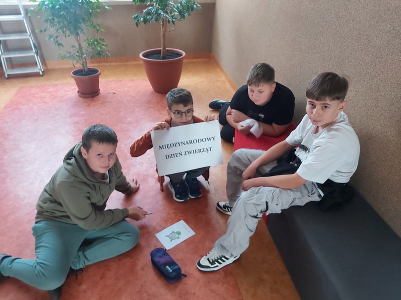 W ciągu roku obchodzimy wiele dni poświęconych poszczególnym gatunkom zwierząt. Jest Dzień Psa i Dzień Kundelka, Dzień Kota, Słoni, Tygrysów, Pingwinów, Pszczoły i wiele, wiele innych. Jednak najważniejsze święto jest 4 października, to Światowy Dzień Zwierząt. Obchodzony jest on w dzień wspomnienia św. Franciszka z Asyżu, w religii chrześcijańskiej uznawanego za patrona zwierząt i środowiska. W naszej szkole dużo rozmawiamy o naszych pupilach, o zwierzętach, które nas pasjonują, albo o tych, które wymagają naszej pomocy. Z inicjatywy Samorządu Uczniowskiego na korytarzach szkolnych uczniowie wykonywali prace plastyczne, które przedstawiały najróżniejsze zwierzęta, zaś efekty tej pracy można oglądać na gazetce szkolnej.
