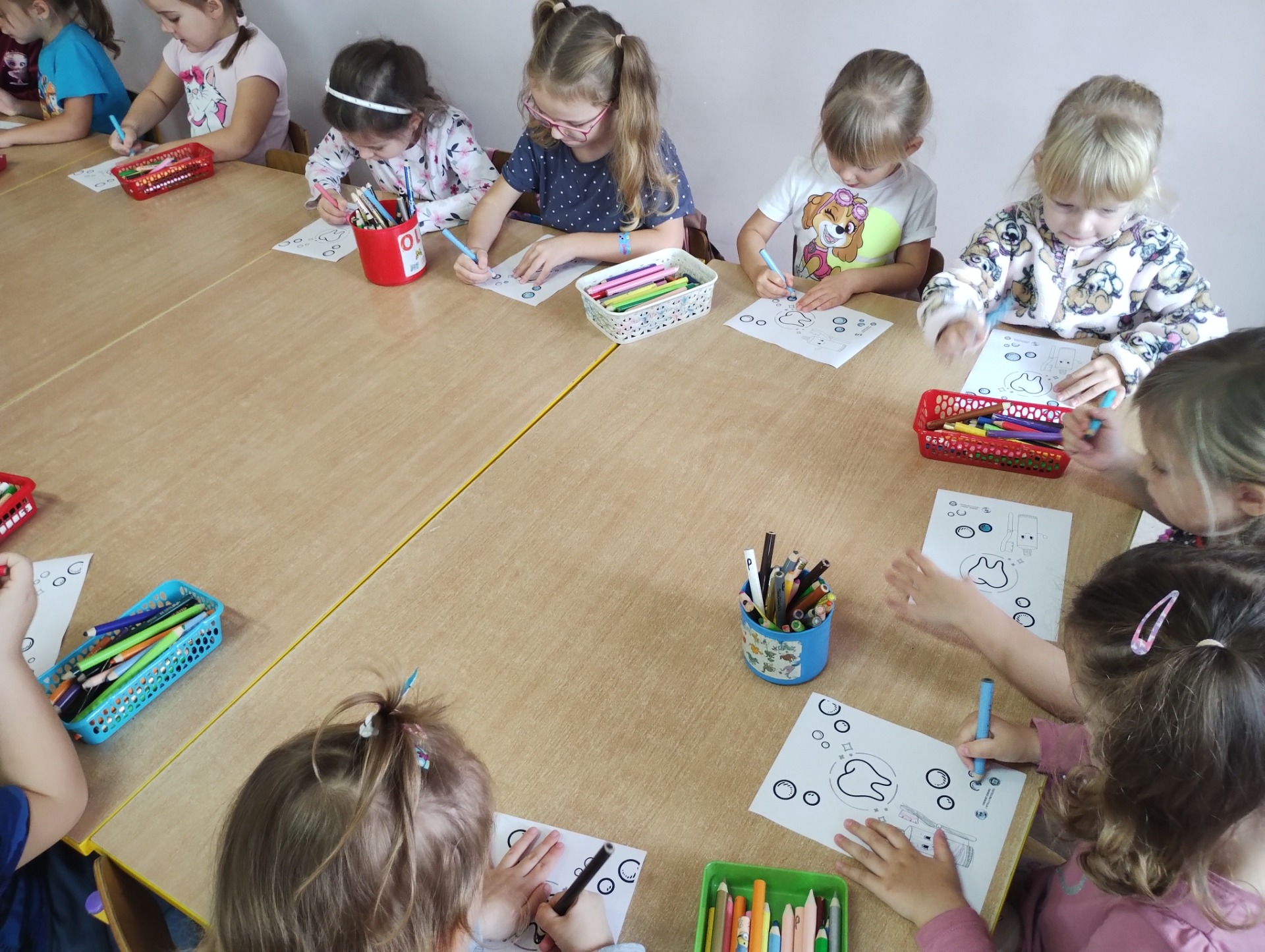 W październiku w naszym przedszkolu odbyła się ciekawa pogadanka na temat higieny jamy ustnej, przygotowana przez pracownika Sanepidu w Kraśniku. Pani prowadząca opowiedziała dzieciom, dlaczego dbanie o zęby jest tak ważne i jak należy je prawidłowo myć, aby były zdrowe i piękne. Z pomocą modelu sztucznej szczęki i szczoteczki zaprezentowała, jak należy wykonywać właściwe ruchy podczas szczotkowania. Następnie przedszkolaki mogły same spróbować swoich sił i pokazać, czego się nauczyły. Na zakończenie każde dziecko otrzymało obrazek o higienie zębów, który mogło pokolorować według własnego pomysłu. Spotkanie przebiegło w radosnej atmosferze i z pewnością zachęciło najmłodszych do codziennego dbania o swoje ząbki!