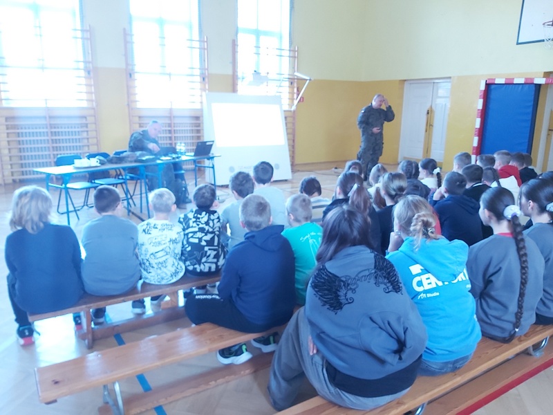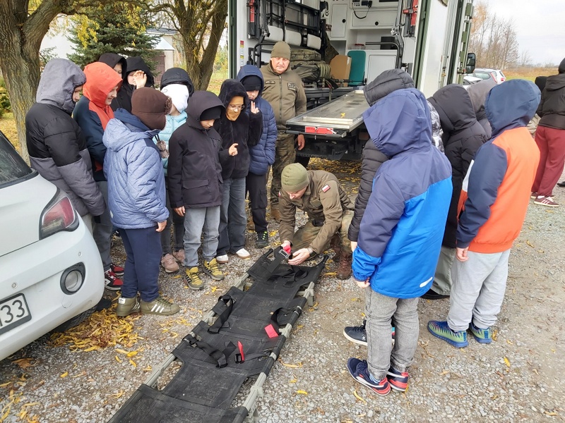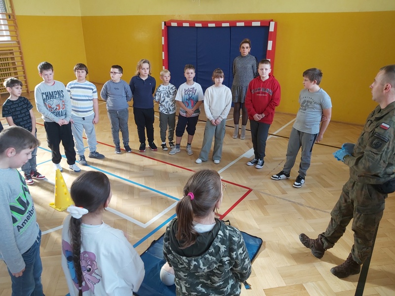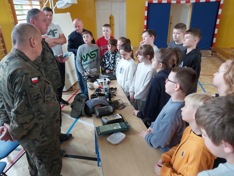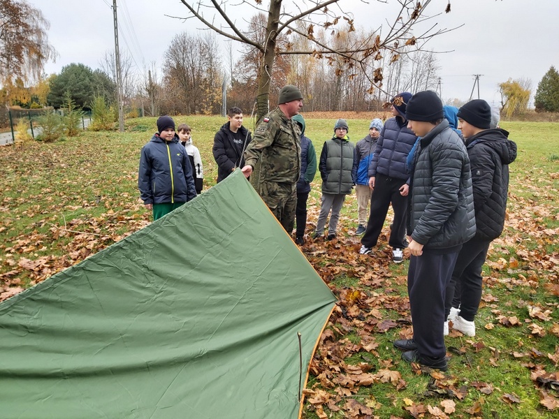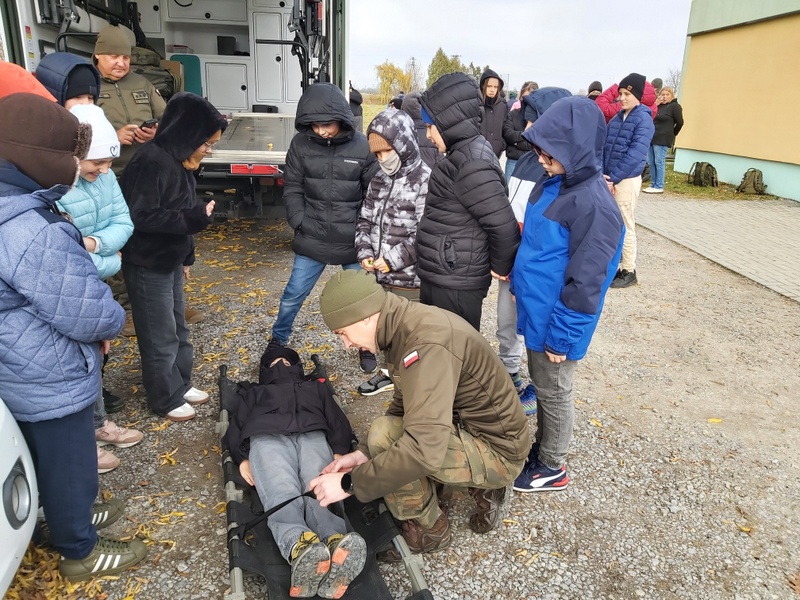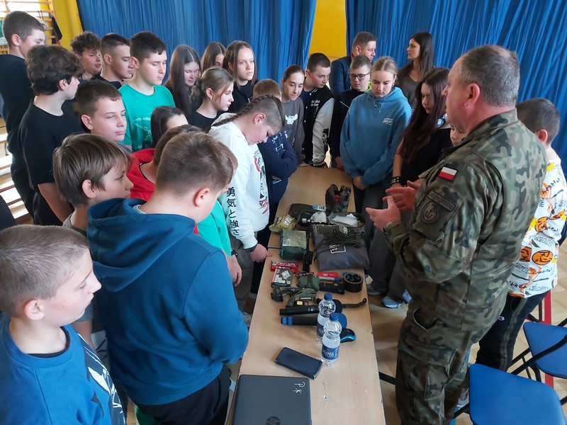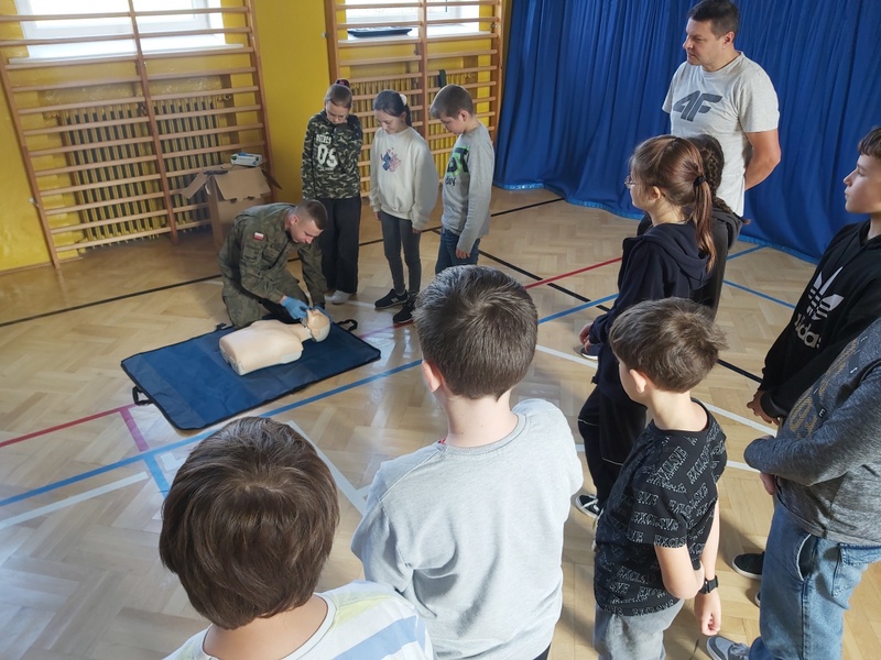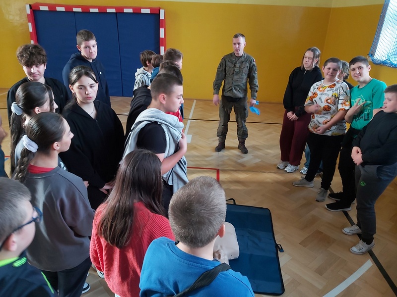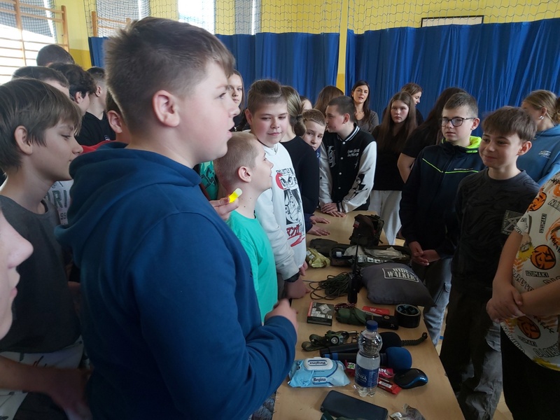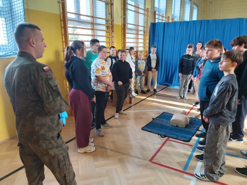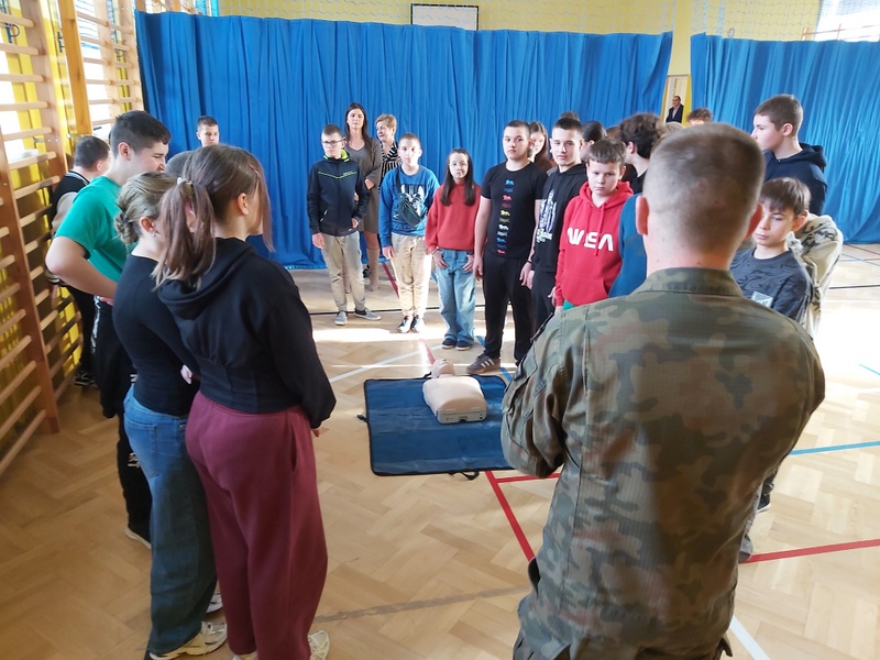 Trzygodzinne szkolenie łączyło teorię i praktykę zawierając treści z pogranicza wojskowości, obronności, bezpieczeństwa, pomocy medycznej oraz obrony cywilnej. Uczniowie zapoznali się m.in. z zasadami alarmowania, sposobami szukania i wzywania pomocy, podstawami ewakuacji i schronienia, technikami udzielania pomocy czy reagowania w sytuacji kontaktu z podejrzanymi, niezidentyfikowanymi obiektami. Młodzież miała okazję z bliska zobaczyć umundurowanie, plecaki oraz sprzęt używany na co dzień przez wojsko. Obejrzeli karetkę wojskową i jej wyposażenie. Mieli okazję transportować na noszach swoich kolegów. Odbyli także szkolenie z zakresu pierwszej pomocy przeprowadzony przez wojskowych ratowników. Mogli nauczyć się podstawowych zasad udzielania pomocy przedmedycznej, takich jak resuscytacja krążeniowo-oddechowa czy opatrywanie ran. Nie zabrakło też ćwiczeń praktycznych – każdy mógł spróbować swoich sił na specjalnych fantomach. Dużą atrakcją było budowanie schronienia tymczasowego z plandeki wojskowej lub szałasu z gałęzi.