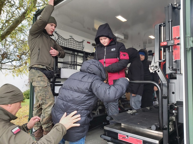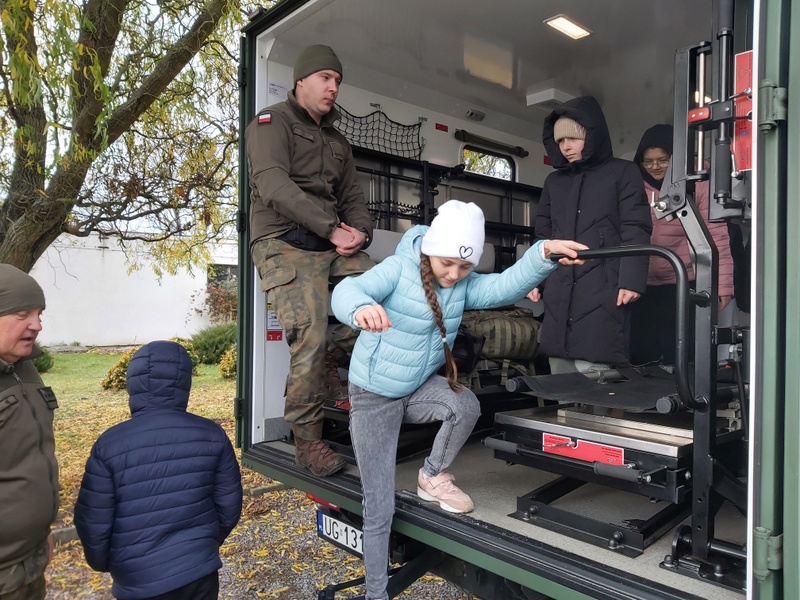 Żołnierze cierpliwie odpowiadali na pytania, dzielili się ciekawostkami i podkreślali znaczenie patriotyzmu oraz odpowiedzialności.