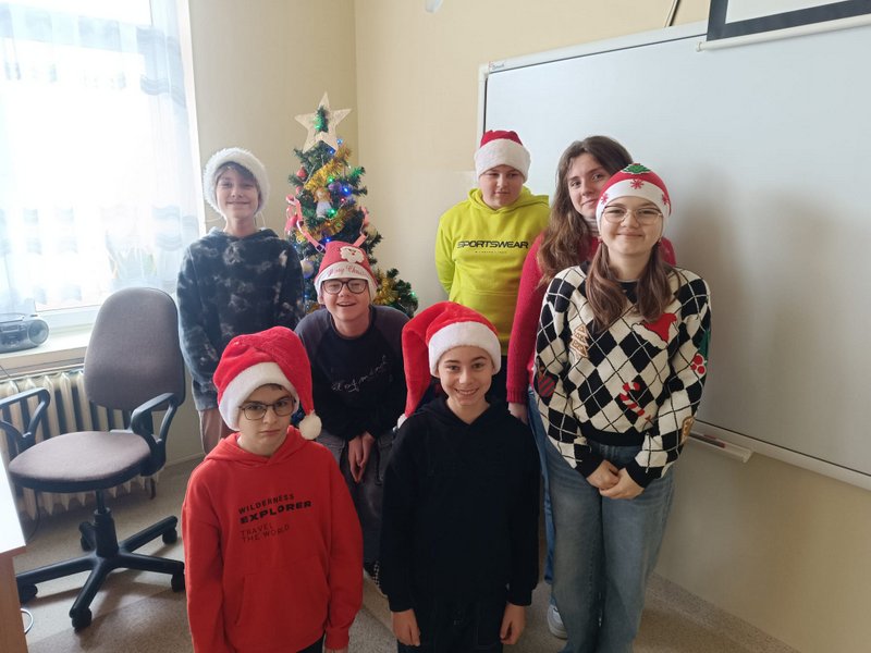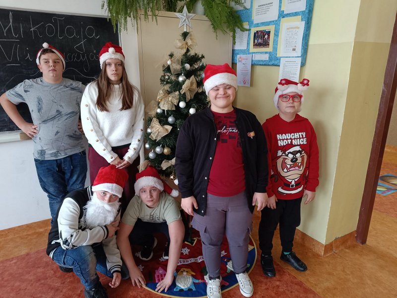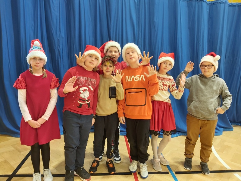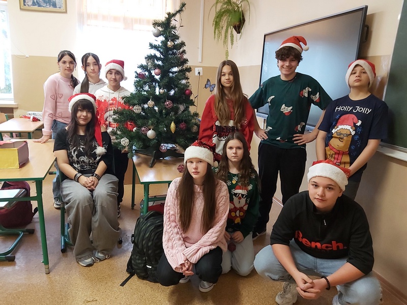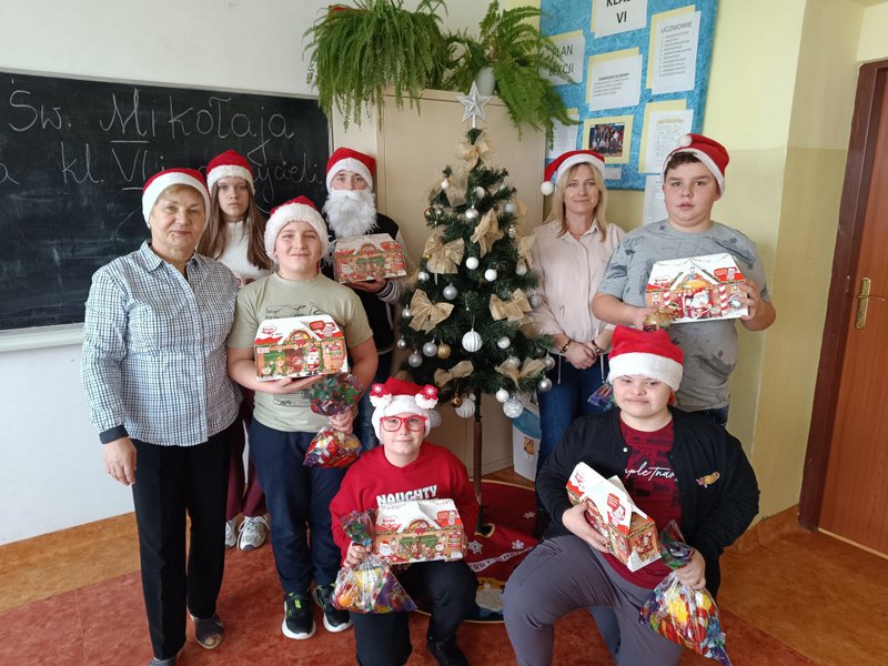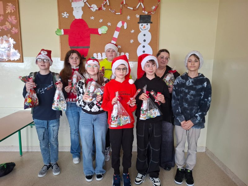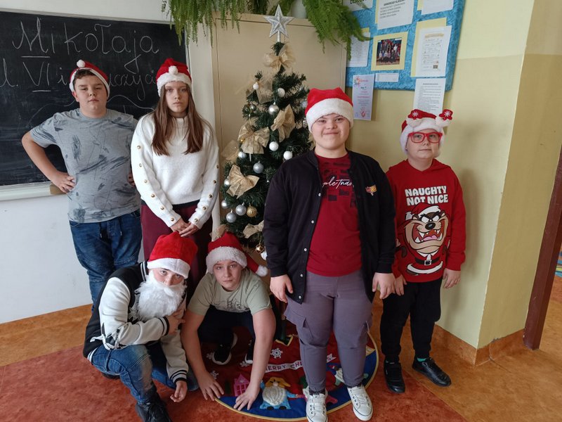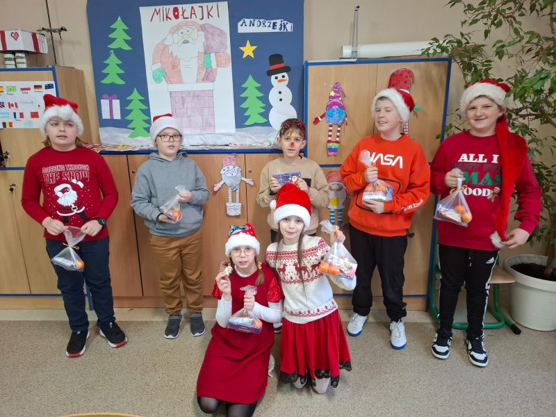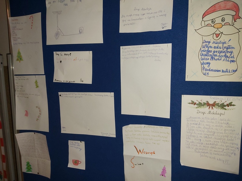 Magiczny dzień – dzień prezentów i spełnienia marzeń. Mikołajki. Bo każdy może być Mikołajem. W szkole zaroiło się od czerwonych czapek mikołajowych, świątecznych swetrów i skarpetek, reniferowych rogów, a nawet choinkowej biżuterii. I chociaż za oknem ponuro, to korytarze szkolne były pełne koloru i radości. Nie zabrakło słodkości i mikołajkowych prezentów. Upominki uczniowie wręczali sobie w klasach, ale także otrzymali mikołajowe paczki ze stołówki szkolnej. Nie mogło obyć się bez listów do Mikołaja. Było w nich wszystko - prośby o prezenty, o zdrowie, o pokój na świecie. Listy te zawisły na korytarzu szkolnym, może prawdziwy Mikołaj je przeczyta i spełni nasze marzenia.